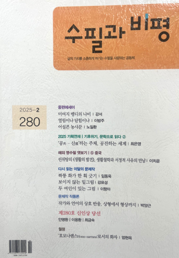 한편 ‘수필과 비평 올해의 작품상’은 매년 참신한 작품을 발굴하여 신인 작가를 배출하는 권위 있는 문학상으로 이번 수상을 계기로 안 교장의 향후 작품 활동에도 큰 기대가 모이고 있다.