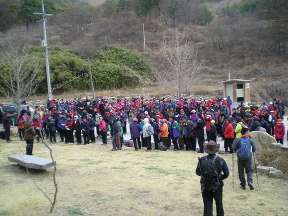 산행에 참가한 시민들은 영동교 아래 금호강 둔치에서 버스를 타고 자양면 보현4리 거동사 입구로 이동해 돌탑공원에서 산행을 시작, 갈마봉~돌탑~보현삼거리~작은보현산을 경유하는 8㎞코스를 산행했다.