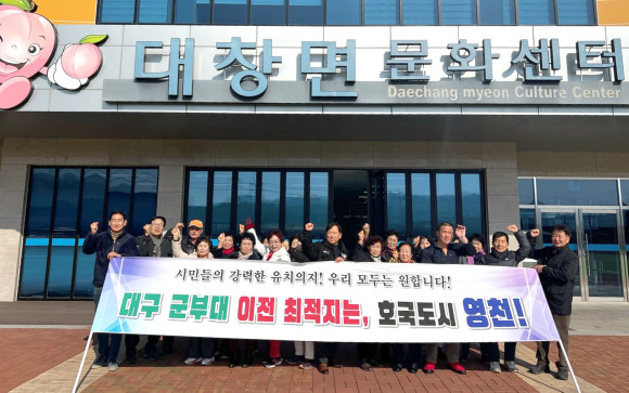 이날 정기총회는 박수문 지회장, 박상우 대창면장, 회원 등 30여 명이 참석한 가운데 문화향유 증진 방안을 논의했으며 회의 종료 후 대구 군부대 최종 이전지 영천 최종 선정에 대한 염원을 담아 ‘대구 군부대는 영천으로’ 구호를 외치며 응원했다.