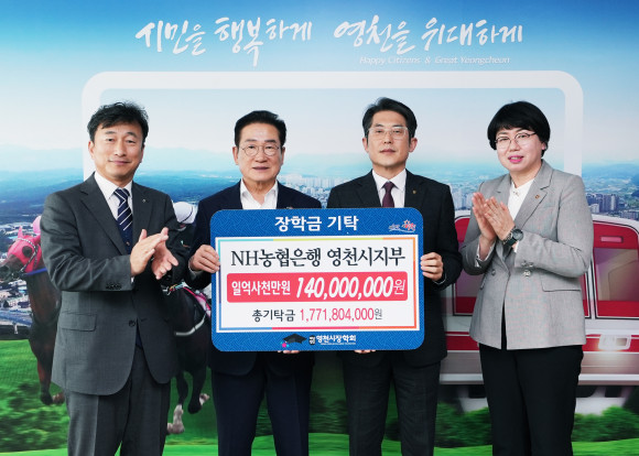 영천시장학회에 3월 12일 농협은행 영천시지부(지부장 김강훈) 1억4000만원, 중앙동체육회(회장 김민성) 100만원의 장학금을 기탁했다.