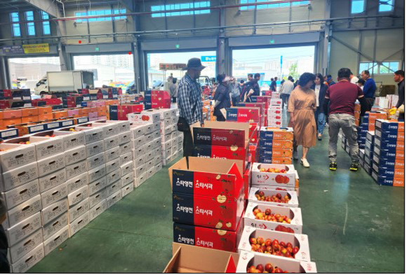 ↑↑ 과일 경매가 이루어지는 농산물도매시장(시민신문 자료사진).