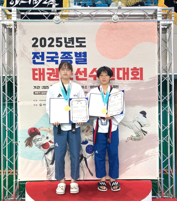천지인태권도장 소속 김서현(영천여중) 선수와 김지엽(영천중) 선수가 3월 18일 부터 영천체육관에서 열린 2025전국종별태권도선수권대회 품새 경기에서 빼어난 기량을 발휘하며 금메달을 획득하는 쾌거를 이뤘다. 또한 이번 성과로 국가대표 선발전 출전권까지 획득하며 더 큰 무대에서 도전할 기회를 얻게 됐다. 이 놀라운 성과 뒤에는 김정수 관장의 아낌없는 서포트와 이준수 사범의 열정적인 지도가 큰 역할을 했다. 겨루기 선수 출신 지도자가 품새 대회에서 금메달을 배출하는 것은 결코 쉬운 일이 아니지만 끊임없는 연구와 노력, 그리고 선수들과 함께한 땀방울이 만들어 낸 값진 결과다.