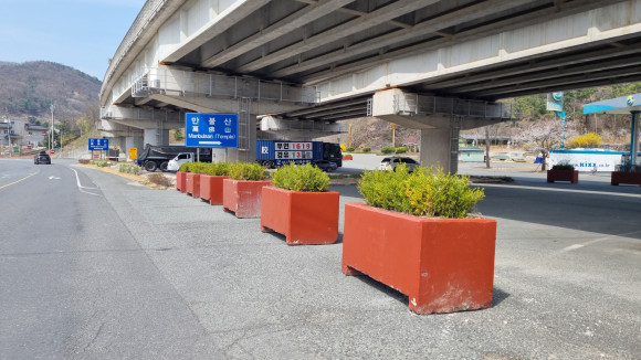 북안면 만불사 입구 도로에는 대형 콘크리트 화단이 즐비하게 단장됐다. 이곳 주민들은 “콘크리트 대형 화단이 놓인 자리는 영천시 부지나 공유지다. 만불사 소유의 땅은 아닌 것 같다.”며 본사에 민원 해결을 제보했다.