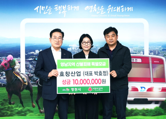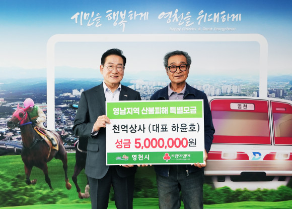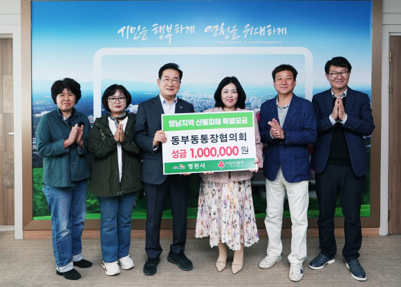 최기문 영천시장은 “역대 최악의 산불로 고통받고 있는 피해 주민에게 따뜻한 마음이 담긴 성금을 잘 전달되어 신속히 복구하고 하루빨리 일상으로 돌아가기를 바라며 영천시도 필요한 지원을 아끼지 않겠다.”고 전했다.