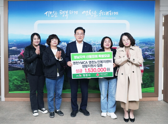 | | | ⓒ 영천시민신문 | | 같은 날 영천YMCA 영천노인복지센터 생활지원사 일동이 성금 153만원을 기부했다. 김진주 센터장은 “적은 금액이지만 십시일반으로 마음을 모아 이재민들에게 위로의 마음을 전하고자 한다.”고 전했다.