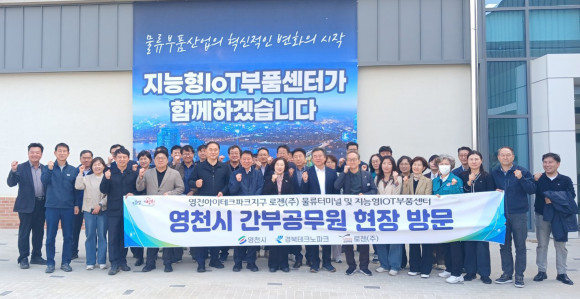영천시는 4월 9일 간부공무원을 대상으로 영천하이테크파크지구 내 로젠㈜ 물류터미널과 지능형 IoT부품센터 현장 견학을 실시했다(사진).