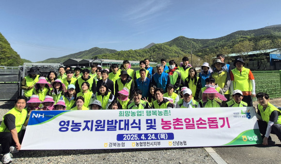 농협 영천시지부는 4월 24일 본격적인 영농철을 맞아 NH농협은행 신입직원과 함께 농촌일손돕기 참여 공감대 확산을 위한 영농지원발대식 및 농촌일손돕기를 실시했다.