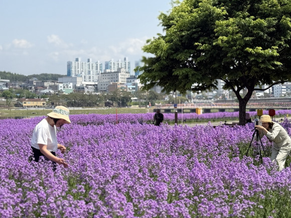 영천시의 봄이 짜릿한 보랏빛으로 물들었다. 5월 5일부터 보랏빛 유채꽃이 금호강변을 따라 만개하며 시민들은 물론 타지에서 온 방문객들의 발길이 끊이지 않고 있다.