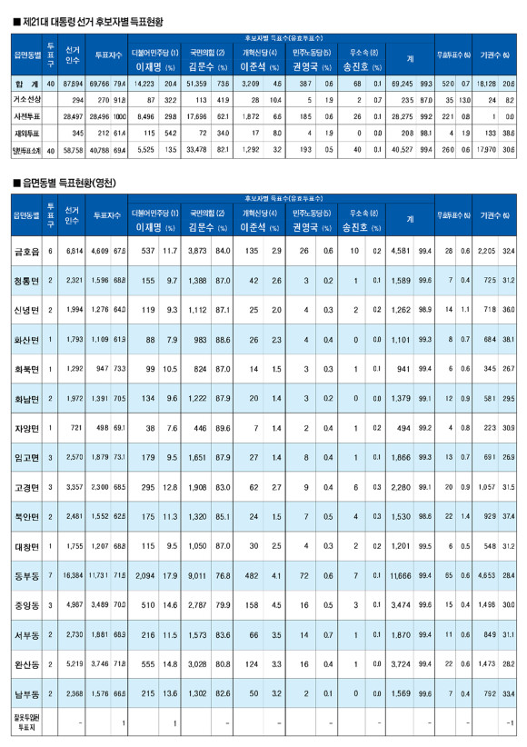 [개표결과]제21대 대통령선거 후보자별 득표현황