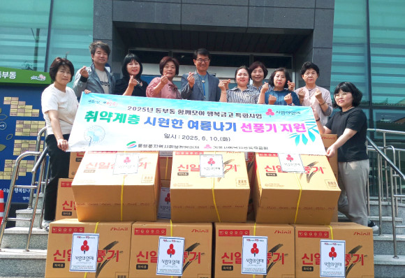 동부동 지역사회보장협의체는 6월 10일 동 행정복지센터에서 폭염에 대비해 취약계층을 위한 선풍기 15대(150만원 상당) 전달식을 가졌다.