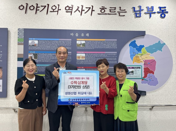 오영호 남부동장은 “더운 여름철 모두의 건강과 행복에 큰 힘이 되는 복달임 음식을 마련해주신 이길태 성원산업 대표님께 감사드린다.”며 “남부동에서도 주민들이 건강한 여름을 날 수 있도록 세심히 살피겠다.”고 말했다.