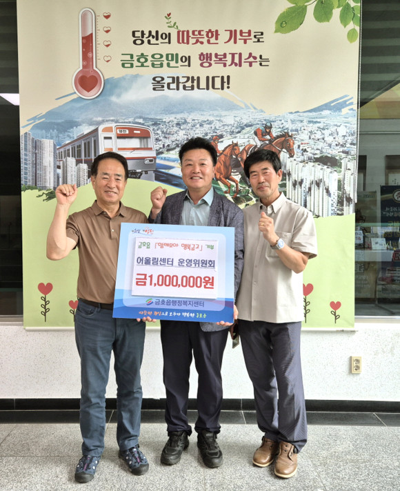 기탁된 성금은 금호읍 맞춤형복지팀과 금호읍 지역사회보장협의체를 통해 관내 취약계층을 위한 복지사업에 쓰일 예정이다.