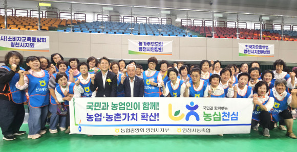 농협 영천시지부(지부장 김강훈)는 9월 9일 농가주부모임 영천시연합회(회장 이동봉)와 함께 ‘농심천심(農心天心)운동’ 확산에 앞장서기로 다짐했다. 영천시 2025 양성평등기념식에 참여한 농주모 회원60여명은 지부장, 조합장 등과 함께 ‘농심천심’을 외치며 행사에 참여한 영천 시민들에게 홍보했다.