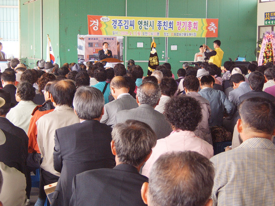 경주김씨 영천시 종친회(회장 김진하) 정기총회가 지난 11일 오전 영천농협 농산물 도매시장에서 김명환 경주김씨 도 종친회장, 김춘기 의성김씨 종친회장, 김경원 국민연금관리공단 감사 및 7백여 명의 회원들이 참석한 가운데 열렸다.