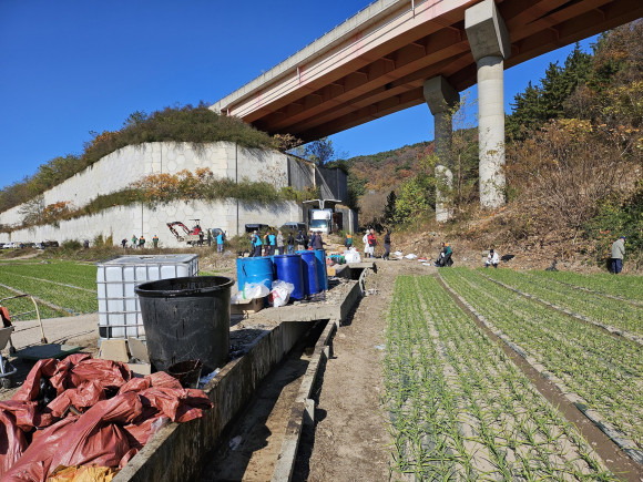 자율방재단, 고속도로 기름유츨 제거 봉사