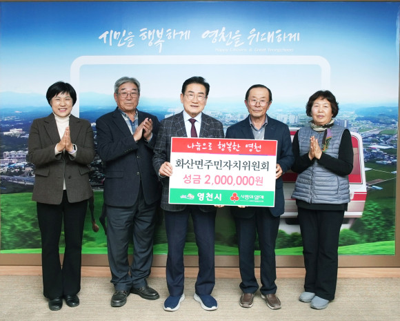 | | | ⓒ 영천시민신문 | | 화산면 주민자치위원회에서 12월 10일 이웃돕기 성금 200만원을 영천시에 기탁했다.