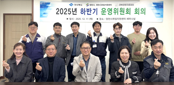 | | | ↑↑ 영천시 취업지원센터는 ‘2025년 하반기 운영위원회 회의’를 개최했다. | | ⓒ 영천시민신문 | | 영천시 취업지원센터(이하 센터)는 12월 11일 센터 1층 세미나실에서 ‘2025년 하반기 운영위원회 회의’를 개최했다. 이번 회의에는 권철환 센터장, 관내 기업체(㈜화신, ㈜동서웰빙, ㈜신영, ㈜청아냉동식품, ㈜아다 등), 영천시, 영천상공회의소 등 취업 유관기관 소속 운영위원들이 참석했다. 참석자들은 올해 사업운영 성과와 주요사업 현황을 공유하고 향후 센터 발전방안에 대한 심도 있는 논의하는 시간을 가졌다.