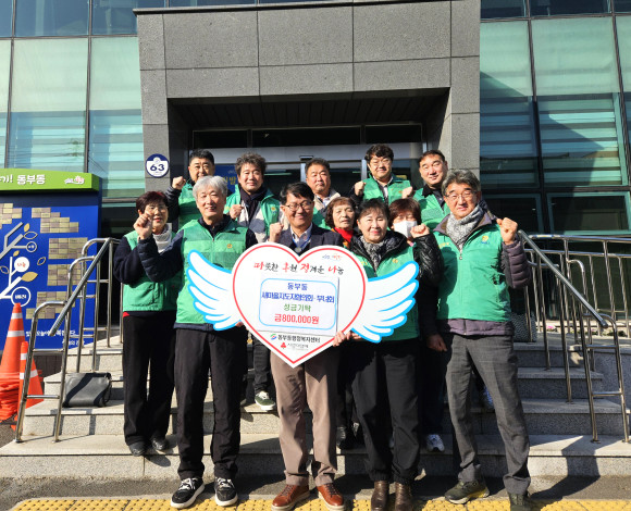 동부동 새마을협의회와 새마을부녀회는 12월 18일 연말을 맞아 지역 내 취약계층을 돕기 위해 ‘희망2026 나눔캠페인’ 성금 80만원을 동부동행정복지센터에 기탁했다(사진). 이번 성금은 지역사회 나눔문화 확산과 이웃사랑 실천을 위해 새마을협의회와 부녀회 회원들이 뜻을 모아 마련한 것으로 기탁된 성금은 경북사회복지공동모금회를 통해 관내 취약계층 지원에 사용될 예정이다.