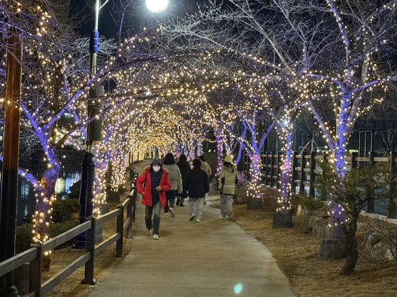 영천시 망정동 416번지에 위치한 망정우로지공원 산책로가 겨울철 야간 명소로 새롭게 주목받고 있다. 공원 내 산책로를 따라 식재된 왕벚나무에 경관조명(스트링라이트)을 설치해 삭막했던 겨울 공원이 따뜻한 빛의 산책길로 탈바꿈했다.