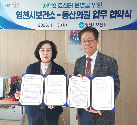 이번 협약은 거동이 불편해 의료 접근이 어려운 장기요양 대상자의 의료 공백을 해소하고 지역 내 재택의료 서비스 체계를 구축하기 위한 것이다. 영천시는 행정적 지원과 사업 총괄을 담당하며 영천시보건소와 동산의원이 협력해 방문진료 및 의료서비스를 제공할 예정이다.