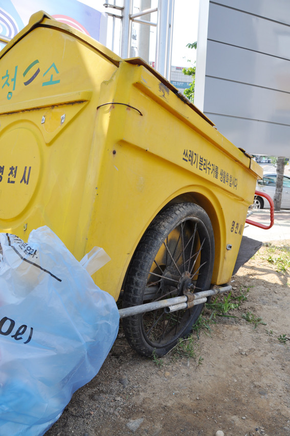대부분 재산으로서의 가치를 상실한 손수레는 폐기처분이 됐고, 재래시장이나 둔치 등 생활쓰레기가 많이 배출되는 지역에는 미화원이 수거해온 쓰레기봉투를 모으거나 청소도구 등을 보관하기 위해 필요에 따라 처분하지 않고 사용되고 있다는 것이다.