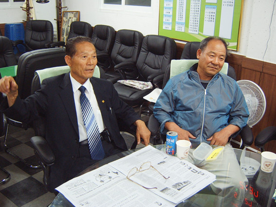 ↑↑ ▲ 당시 활동을 설명하고 있는 김재근 위원장과 김광병 사무국장(좌).