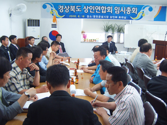 경상북도 상인연합회 비상대책 회의가 지난 18일 오후 영천공설시장 상인회 사무실에서 포항 죽도시장을 비롯해 구미 경주 안동 등의 재래시장 대표자 53명 참석한 가운데 열렸다.