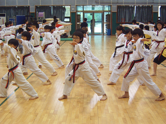 태권도로 외교활동을 펴고 있는 지역 태권도 선수들이 이번에는 구미 안동 포항 선수들과 함께 중국 태권도 시범에 참가하기 위해 무더위 속에 구슬땀을 흘리고 있다.