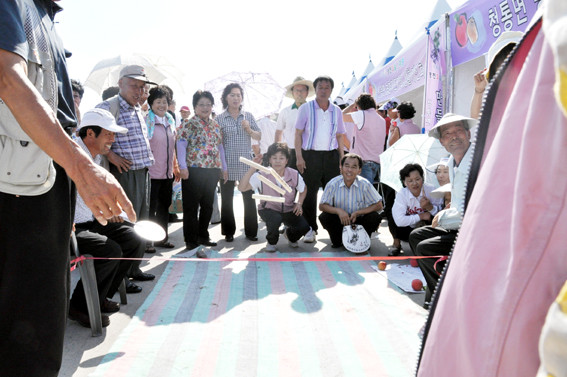축제에는 우리 전통 민속놀이가 있어야 더 흥이 난다. 농촌지도자와 생활개선회원들이 윷놀이를 하며 농사일에 지친 심신의 피로를 풀고 있다.
