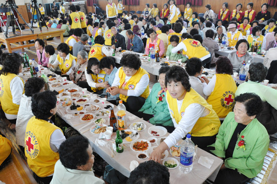 대한적십자사봉사회 영천시협의회는 지난 28일 단포초등학교 체육관에서 지역 독거노인을 대상으로 정성을 담은 음식과 다양한 공연으로 잔칫상을 마련했다.