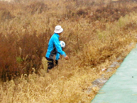 | | | ↑↑ 공이 강바닥으로 나가자 운영위 관계자가 풀속에서 공을 찾아 나오고 있다. | | ⓒ 영천시민뉴스 | |