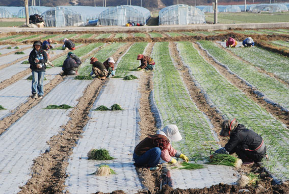 농촌에는 농한기가 없어진지 오래다. 벼를 수확한 논에는 마늘, 양파 파종이 마무리단계에 접어들었다. 사진은 임고면 평천리 들녘에서 양파파종하는 농민들의 모습.