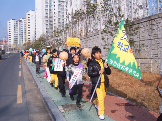 학생들은 교내를 출발해 학교 주변 도로를 따라 걸으며 굿바이 학교 폭력 피켓과 풍선 등을 가지고 시민들을 대상으로 폭력 추방을 홍보했다.