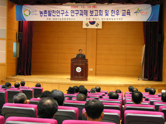 이날 연구과제 보고회에서는 연구위원인 조익환(대구대) 교수가"축산농가의 경쟁력 제고를 위한 가축분뇨 자원화 방안"과 김상달(영남대) 교수가 "토착유용미생물 선발 및 대량 배양 방법"에 대해 발표하여 농업인들의 호응을 얻었다.