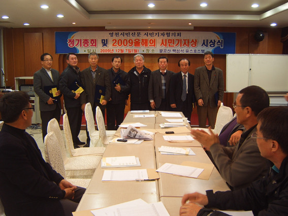 본사 시민기자협의회(회장 정선득) 정기총회 및 2009년 올해의 시민기자상 시상식이 지난 7일 저녁 7시 팔공산 맥섬석유스호스텔에서 본사 지송식 사장, 김대환 논설위원, 정상용 영천시청 공보담당 및 시민기자 본사 직원 등 30명이 참석한 가운데 열렸다.