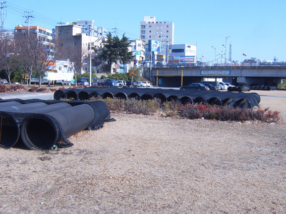 둔치 곳곳에 하수관을 두고 있어 둔치를 이용하는 시민들에 불편을 주고 있는 것에 대해서 이 업체 대표는 "조달 물건을 구입했기에 한쪽에 하고 또 관을 가져오고 하는 것은 불합리하기 때문에 한꺼번에 모두 같다 놓았다"면서 "빨리 공사를 마치도록 하겠다"고 했다.
