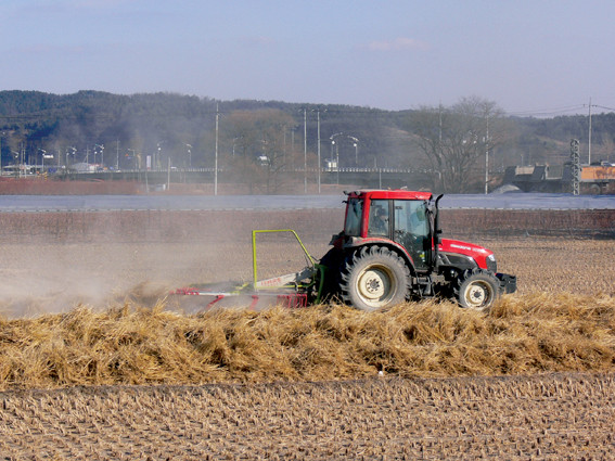 농촌 들녘에는 소 먹이용 볏짚을 수확하는 농민들의 손길이 분주하다. 최근에는 볏짚수확용 최첨단 농기계가 등장해 눈길을 끈다.