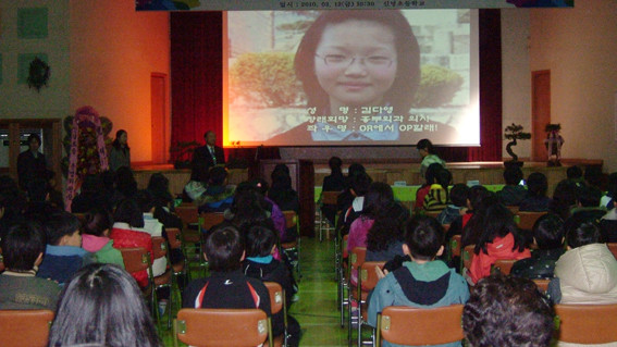 정 교장은 󰡒감사하는 마음으로 남을 도우는 사람이 되고, 성실하고 최선을 다하며 책을 가까이 하는 사람이 돼야 한다󰡓고 인사했다.