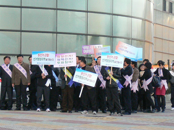 제 5회 전국동시지방선거 선거부정감시단이 발대식을 갖고 불 탈법선거예방 및 감시활동에 들어갔다. 지난달 18일 영천시청소년수련관에서 단속요원행동강령 및 단속활동 특별교육을 마친 선거부정감시단원들이 불법선거척결을 다짐하고 있다.