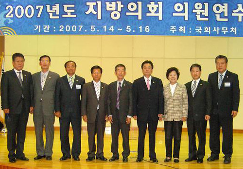↑↑ 국회사무처 의정연수원에서 실시한 '2007 지방의회 의원연수'에 참석한 군의원들. 좌로부터 김학희-이상천-나남훈-이우용-이길수-신민식-김의순-곽경호-배완섭 의원.
