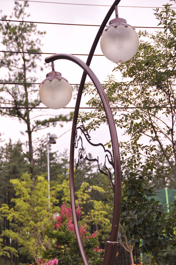 ↑↑ 임고면에 소재한 운주산승마휴양림 진입도로변 가로등이 말을 표현한 이색 조형물로 제작돼 눈길을 끌고 있다.