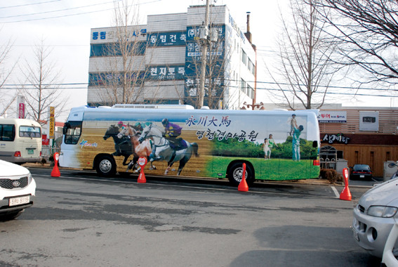 ↑↑ 영천시청버스의 외벽을 말 디자인으로 제작돼 전국을 달리며 영천을 홍보하고 있다.