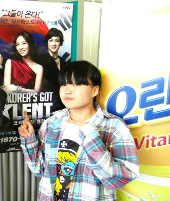 ↑↑ 케이블방송 프로그램인 ‘코리아 갓 탤런트’ 홍보포스터앞에서 포즈를 취하고 있는 박윤지 양.