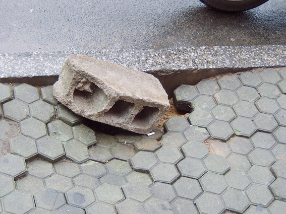 학교 앞 인도 보도블럭이 파손되어 학생은 물론 보행자들에게 불편을 주고 있다. 영천고등학교앞 상가의 인도가 20cm이상 내려앉아 통학하는 자전거와 유모차 등 이동에 지장을 주고 있다.