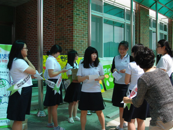점심시간을 이용해 교내 식당 앞에서 실시한 이번 캠페인은 청소년지원센터 자원봉사자와 학교 또래도우미들의 협조로 이루어졌다. 자원봉사자와 학교 또래도우미들은 인터넷(게임) 중독예방 현수막을 설치하고, 학생들이 직접 만든 홍보 판넬도 전시하며, 홍보 리플렛과 인터넷 중독 예방 로고가 찍힌 홍보물(거울, 펜)도 나누어 주었다.