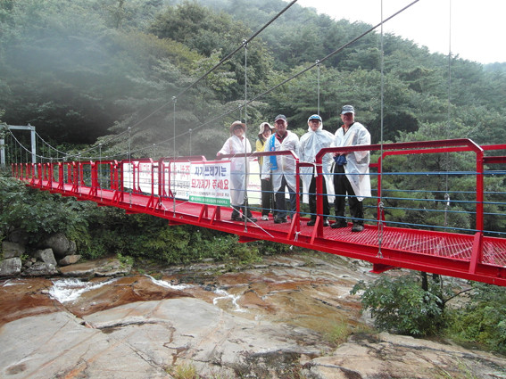 | | | ↑↑ 비가 내리는 가운데 대원들이 우의를 입고 구름다리를 건너고 있다. | | ⓒ 영천시민뉴스 | |