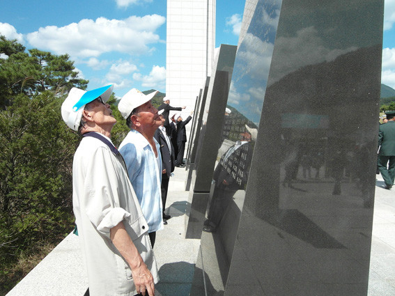 | | | ↑↑ 영천대첩 기념식에 참석한 노병들이 자신의 이름이 새겨진 비문을 보고있다. | | ⓒ 영천시민뉴스 | |