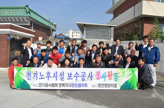 한국전기공사 영천시협회(회장 김규준)는 지난 12일 영천전기공사협의회봉사단 발대식을 갖고 기초수급자 등 저소득층 33가구를 대상으로 노후한 전기 무료 개보수(1320만원) 및 교체봉사활동을 시작했다.