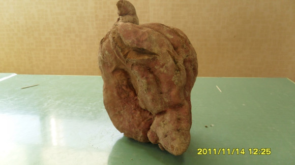 대형 고구마 수확, 화제
