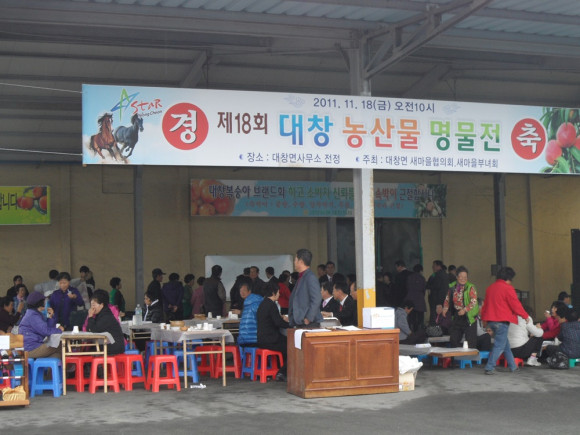 대창면 새마을협의회와 부녀회는 지난 18일 대창면사무소 마당에서 제18회 농산물 명물전을 개최했다. 이날 명물전에는 검정콩, 황토농산물 등 50여점이 다양하게 선보였으며 풍성한 먹거리 시장이 열렸다. 자매결연도시인 대구 수성구 황금1동 홍규택 동장과 기관단체장이 참석해 화합의 장을 마련했다.